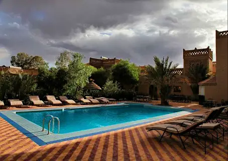 Una opción popular para quienes viajan entre el desierto del Sahara y otras ciudades como Marrakech o Fez. Este hotel de 4 estrellas ofrece habitaciones familiares con aire acondicionado, baño privado, minibar, TV y Wi-Fi gratuito. Los huéspedes pueden disfrutar de una piscina al aire libre, un restaurante que sirve cocina marroquí, un bar junto a la piscina y una terraza para relajarse.