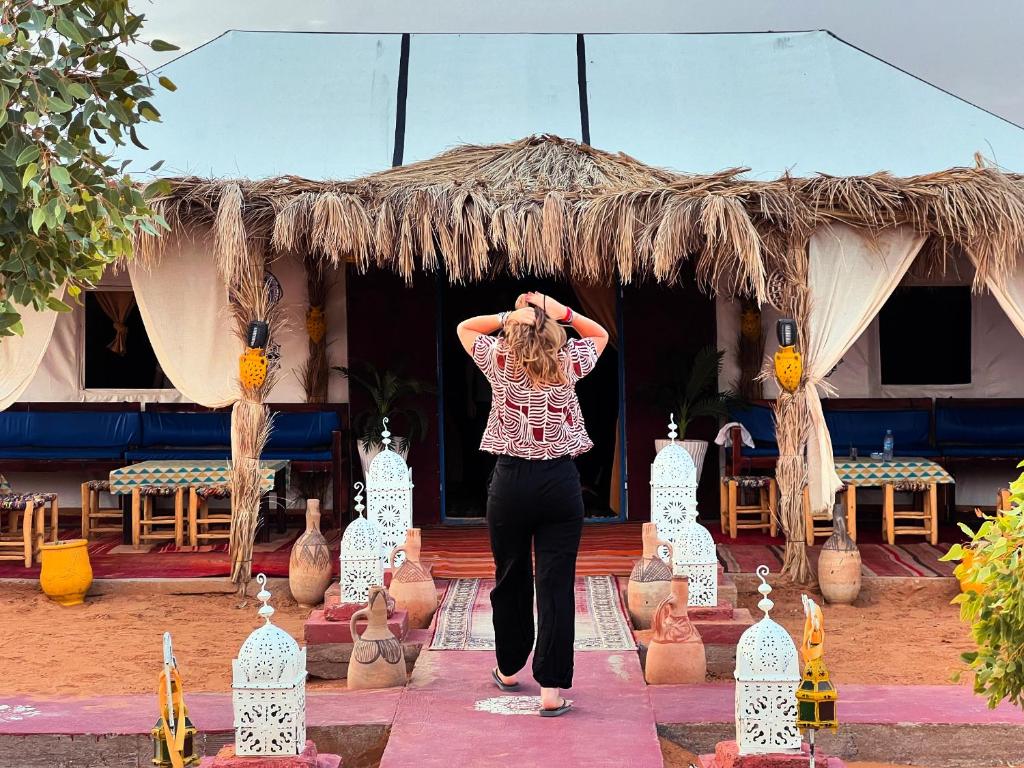 Está ubicado entre las majestuosas dunas de Erg Chebbi (valoración de ubicación: 9,6/10), ideal para una experiencia íntima en el desierto. Ofrece 10 tiendas de lujo amplias, equipadas con baño privado y decoradas con confort y elegancia, pensadas para parejas o pequeños grupos que buscan privacidad y serenidad.